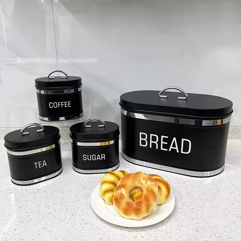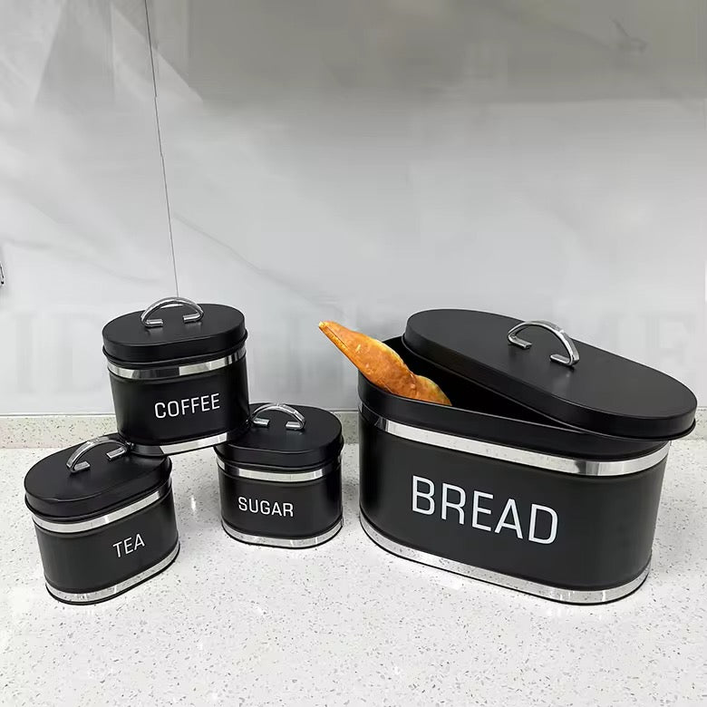 Elevate your kitchen with this elegant 4-piece metal food canister set. Crafted from durable stainless steel with airtight seals, these canisters combine timeless style with practical functionality to keep your ingredients fresh and your countertops organized.
