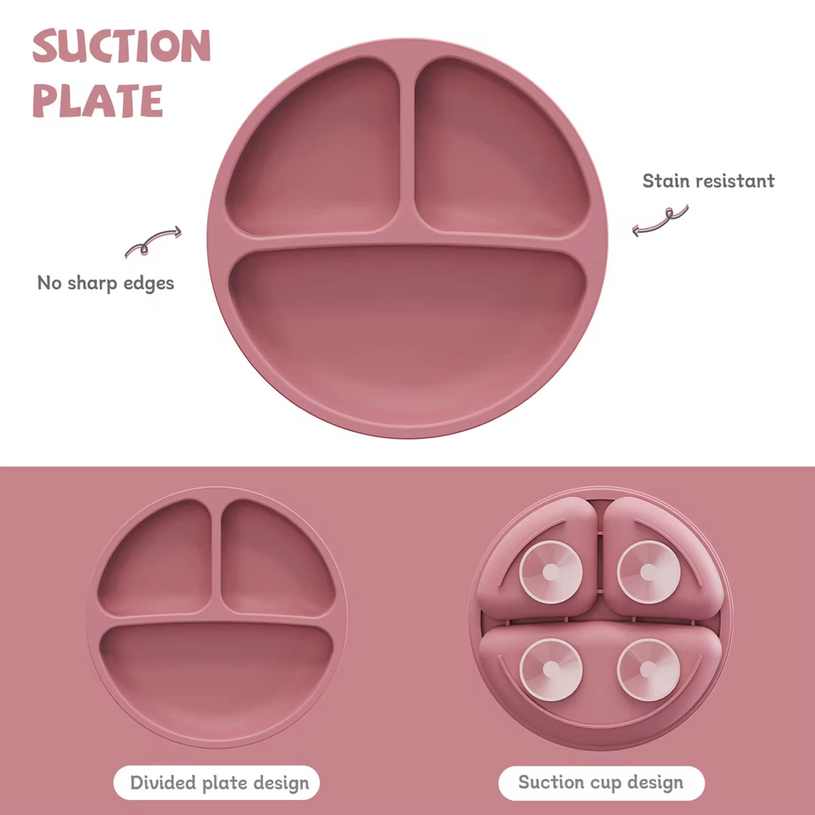- Silicone Plate - Divided sections for balanced meals