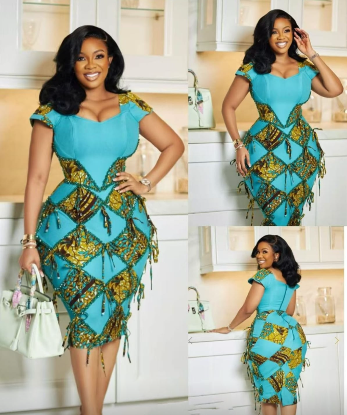 Make a stunning statement with this vibrant African print bodycon dress featuring beautiful turquoise and gold patterns. This figure-hugging dress celebrates African heritage while offering modern style and sophistication.