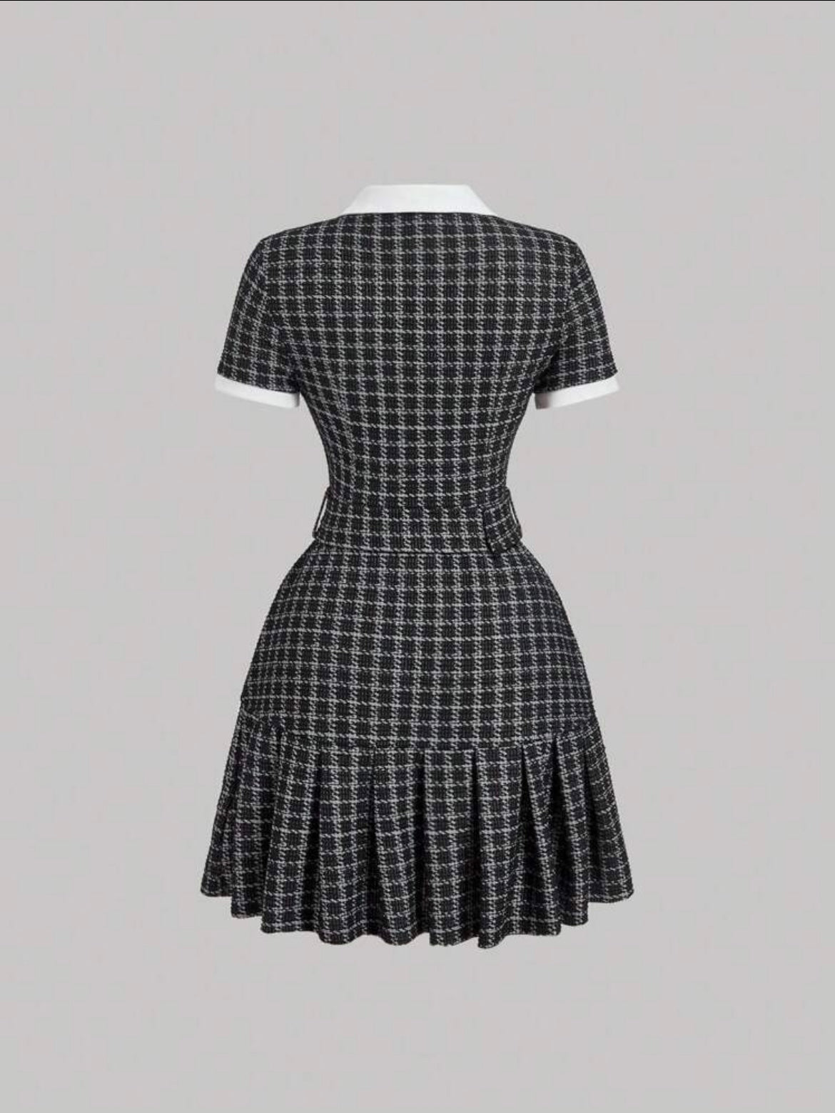 Elevate your wardrobe with this sophisticated checkered blazer dress that perfectly combines professional elegance with modern style. The classic houndstooth pattern in crisp white and black creates a timeless look that's perfect for any occasion.
