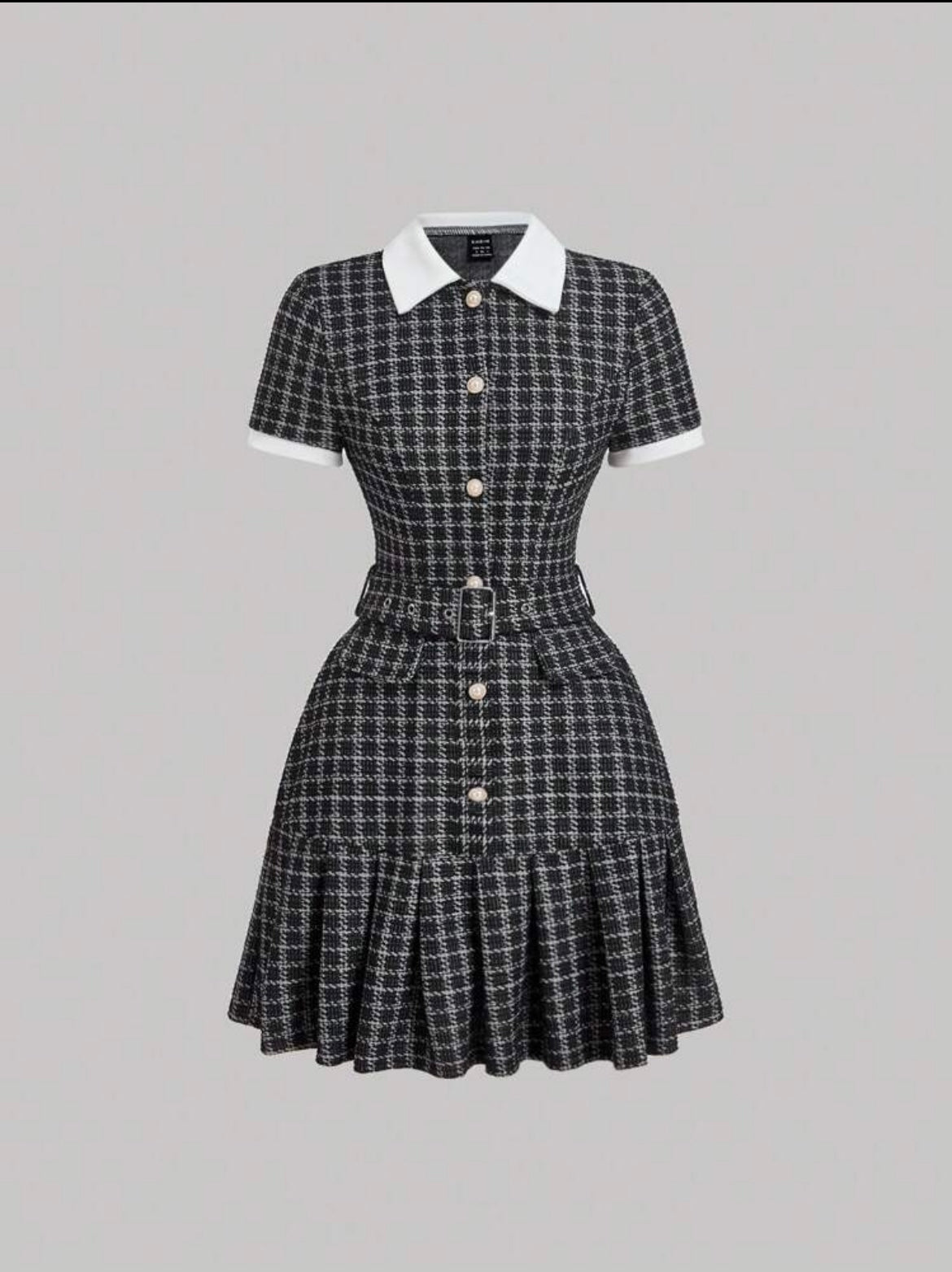 Step into confidence with this chic dress that effortlessly transitions from boardroom to evening out. The sophisticated pattern and tailored fit make this a must-have piece for the modern woman who values both style and professionalism.