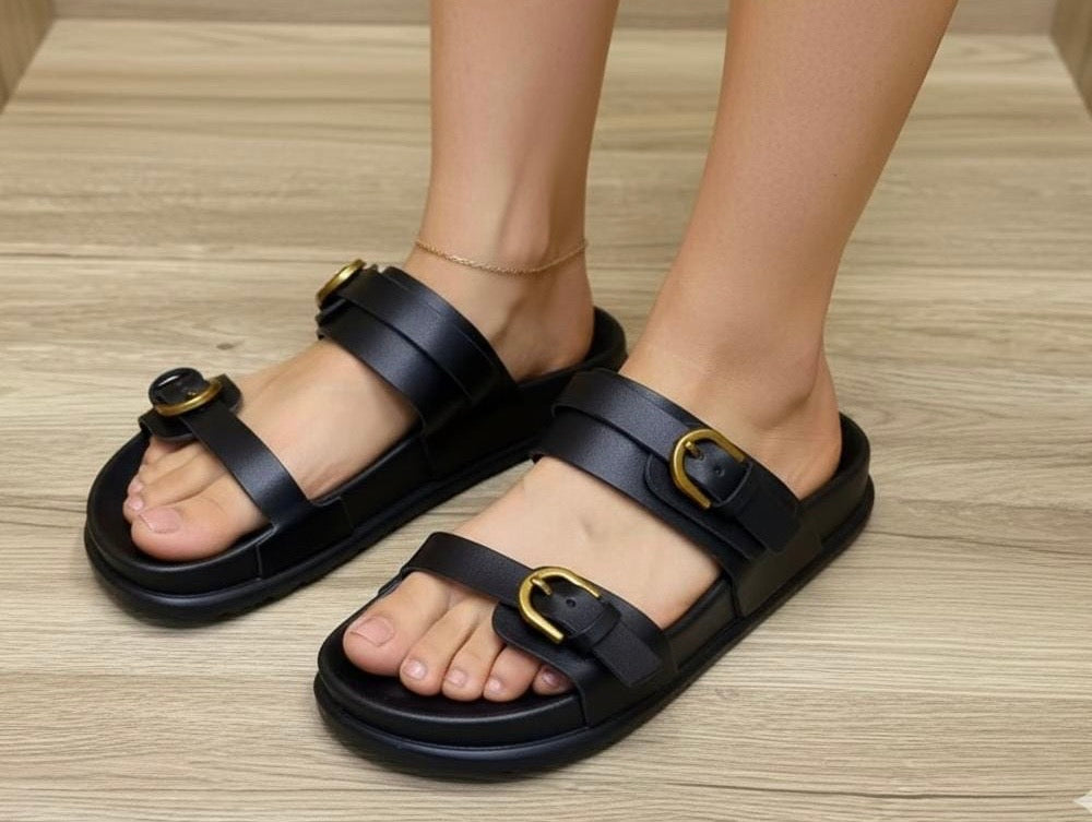 Elevate your summer style with these chic double buckle platform sandals that perfectly blend comfort with contemporary fashion. Featuring adjustable buckle straps and a supportive platform sole, these sandals are designed for the modern woman who refuses to compromise on style or comfort.