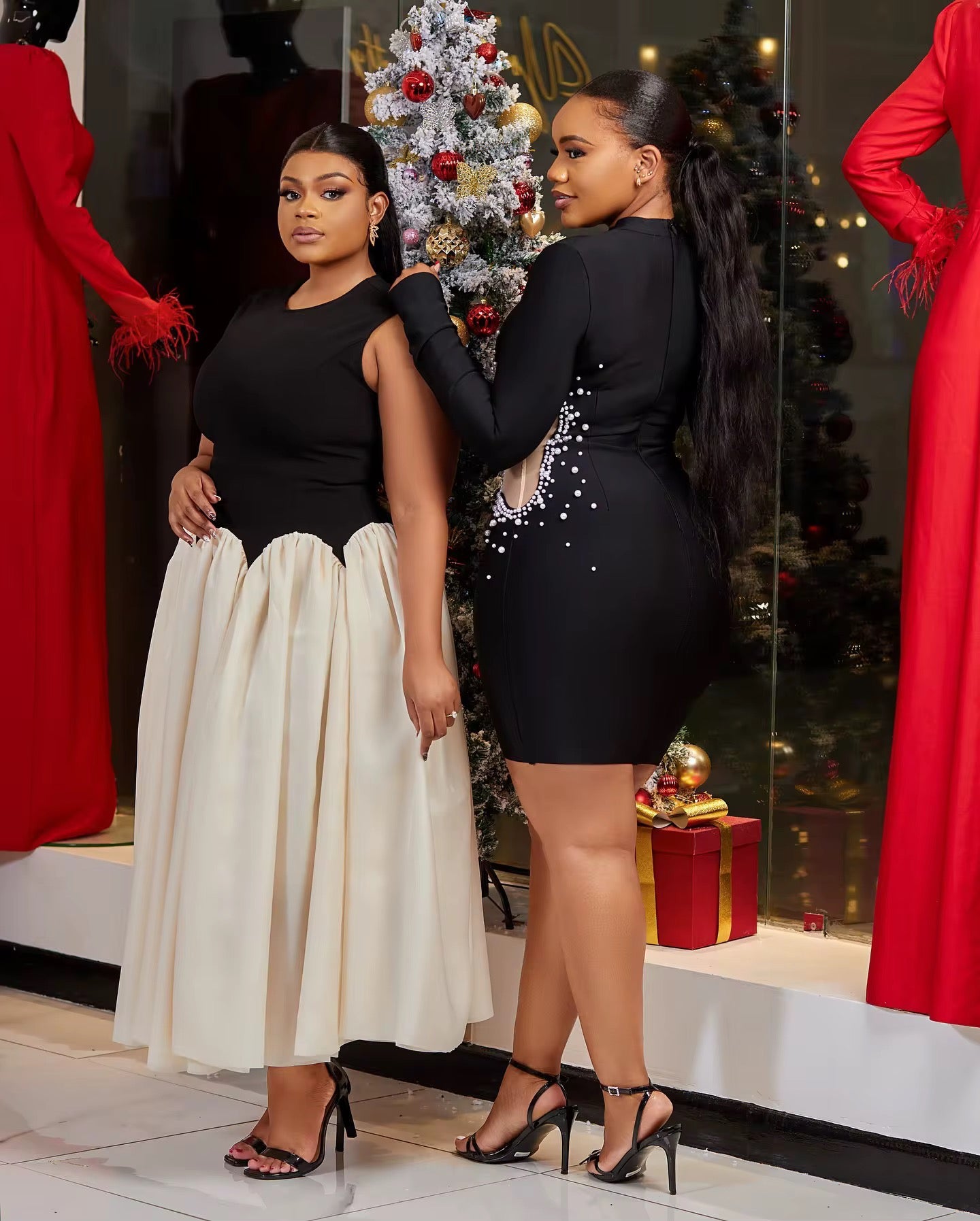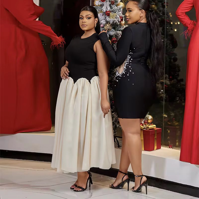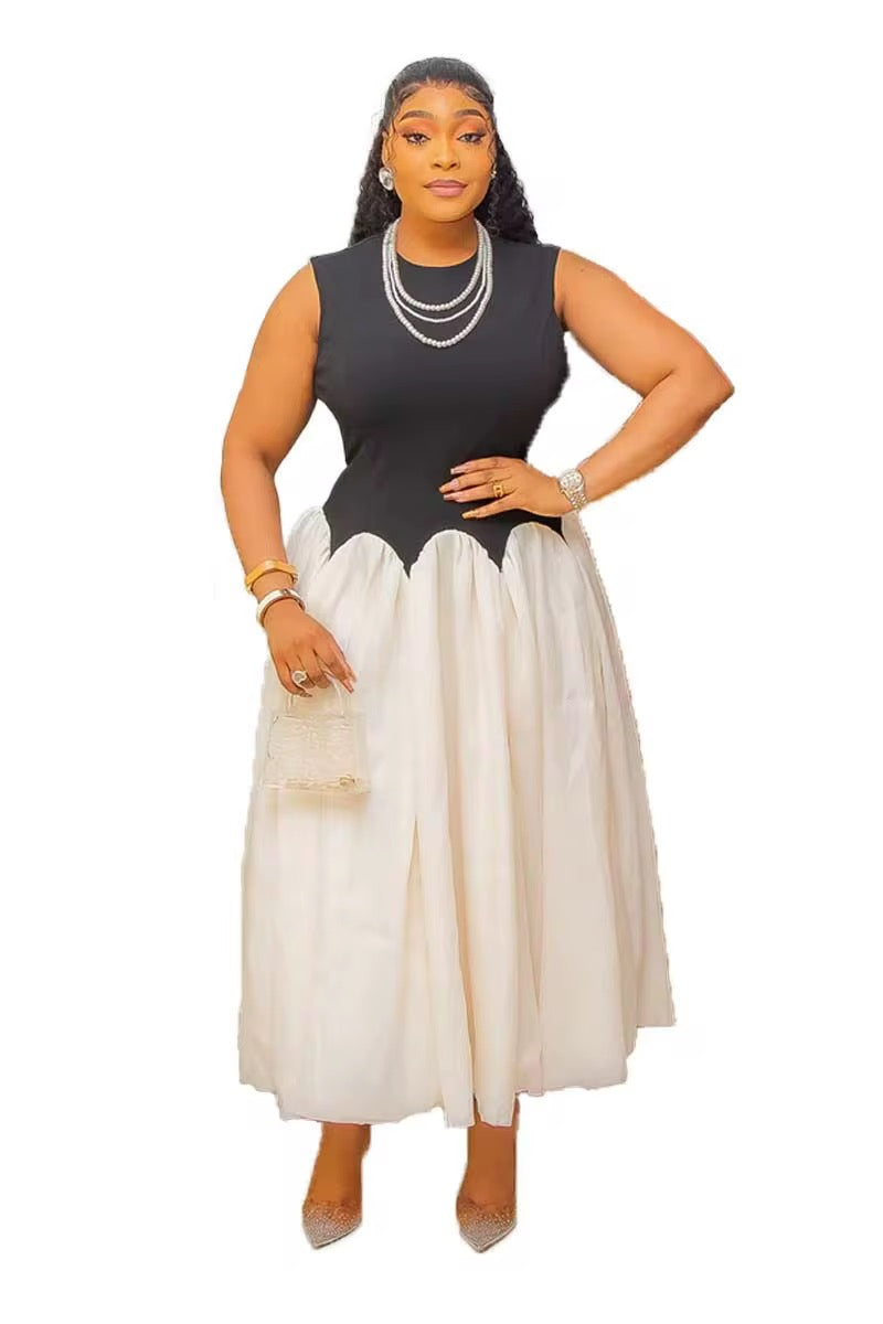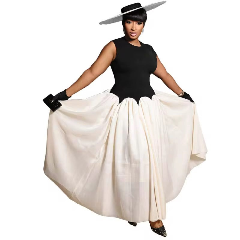 Whether you're attending a wedding, gala, or special dinner, this dress ensures you'll look effortlessly chic. The classic black and white combination makes it easy to accessorize - add your favorite jewelry and heels to complete the look.