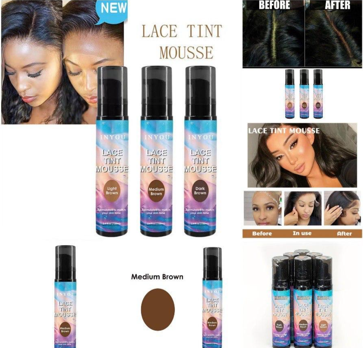 Achieve a flawless, natural-looking hairline with our professional-grade lace tint mousse, specially formulated for lace front wigs and closures. This innovative mousse creates the perfect illusion of natural scalp, making your wig installation virtually undetectable.