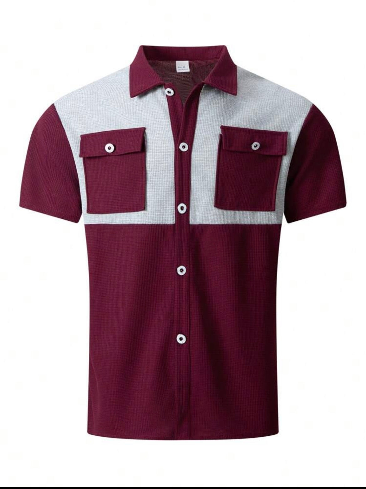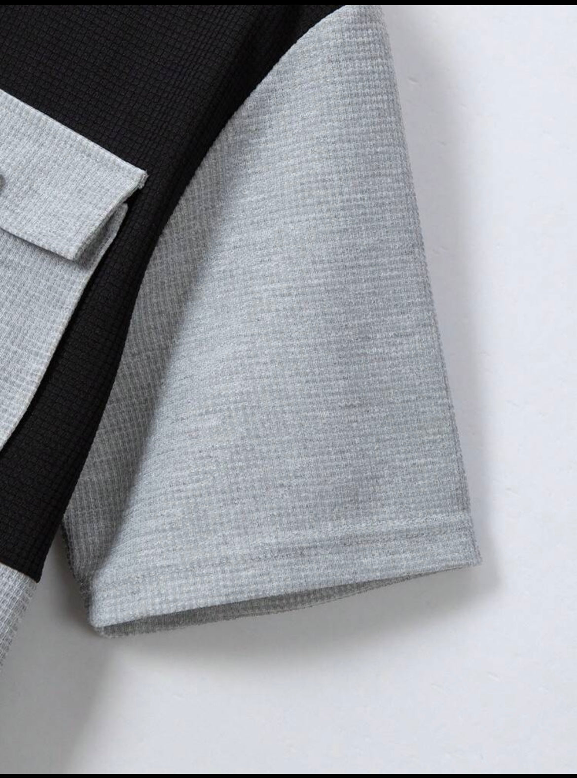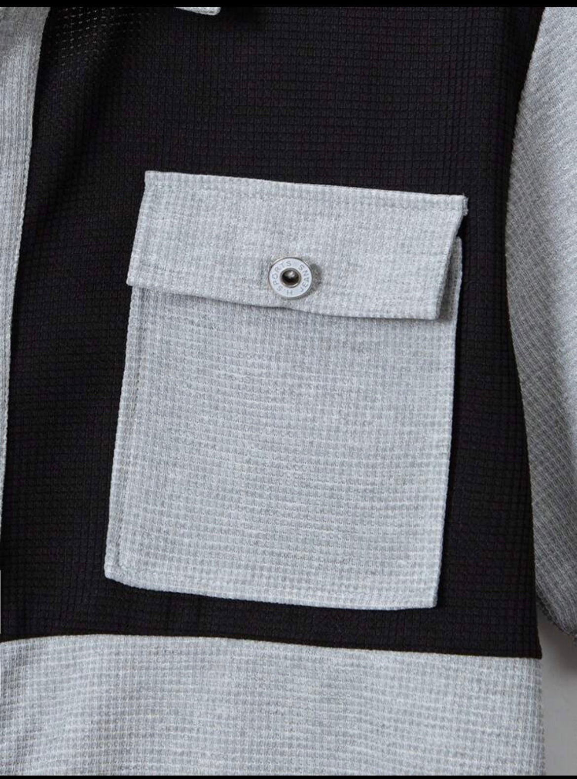 Elevate your wardrobe with this contemporary button-up shirt featuring a striking contrast panel design. This versatile piece combines classic tailoring with modern style elements, making it perfect for both casual and semi-formal occasions.