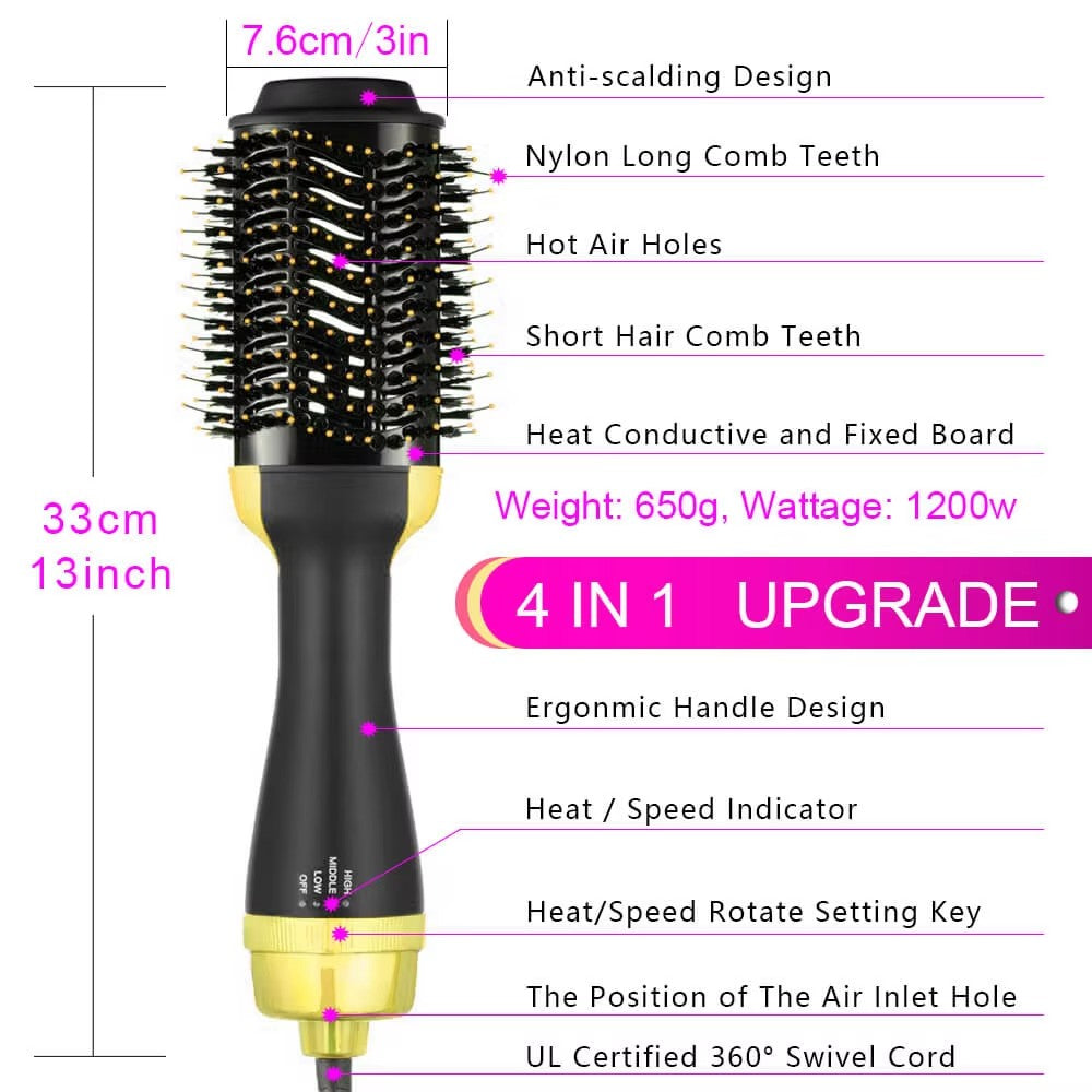 Say goodbye to the hassle of using multiple tools. This hot hair brush glides through your hair effortlessly, reducing styling time while protecting your hair from excessive heat damage. The ergonomic handle ensures comfortable use, even during longer styling sessions.