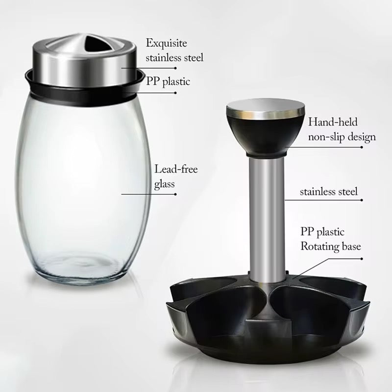 Picture yourself preparing your signature dish, reaching for the perfect blend of spices with a simple spin of your elegant rack. The satisfying rotation brings each carefully labeled jar into perfect view, while the crystal-clear glass lets you see exactly how much seasoning remains. Whether you're experimenting with exotic flavors or reaching for everyday essentials, this rotating rack makes every cooking moment more enjoyable.