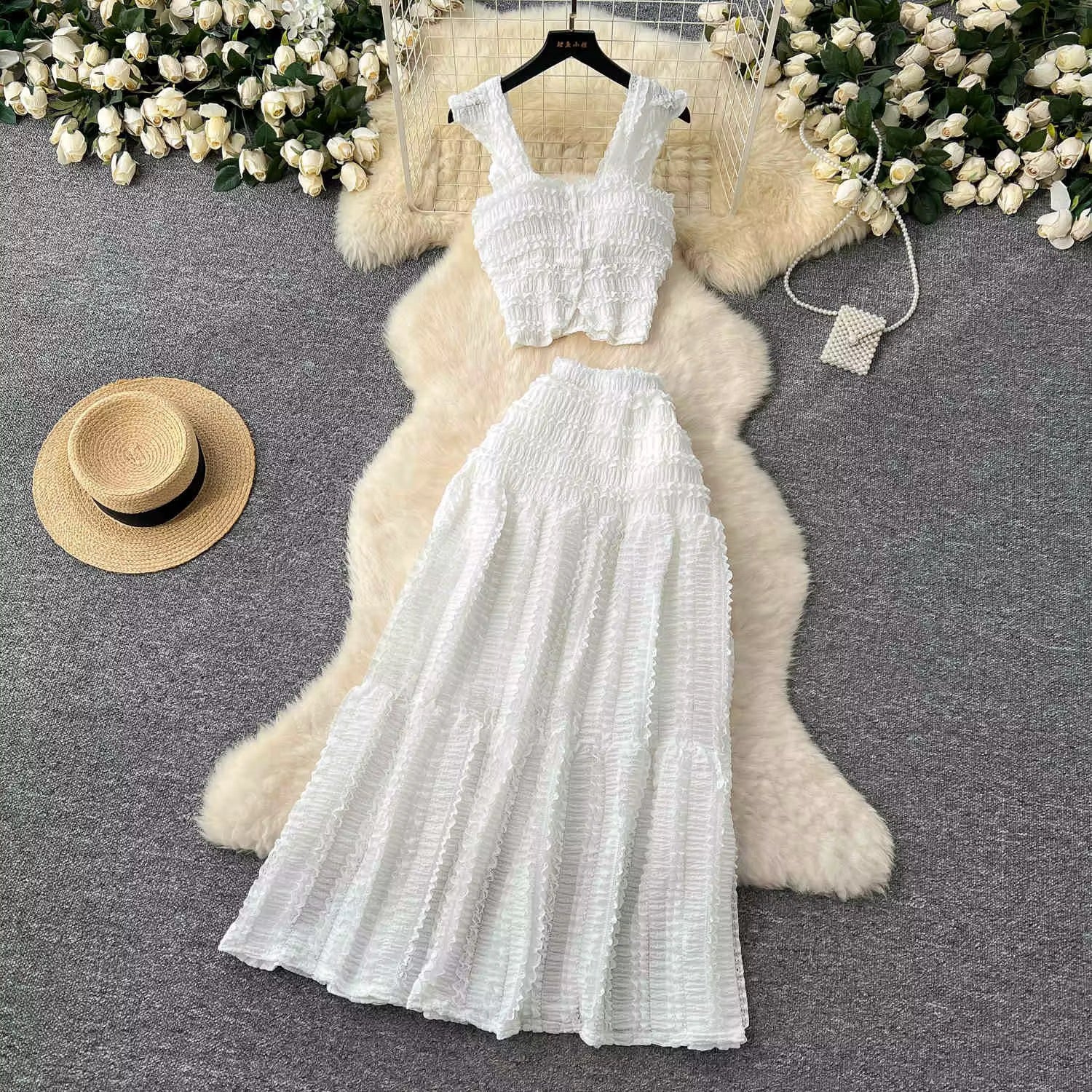 This enchanting two-piece set creates an effortlessly romantic silhouette that flatters every figure. The intricate smocking technique provides both stretch and structure, while the coordinated pieces can be styled together or mixed with other wardrobe favorites.