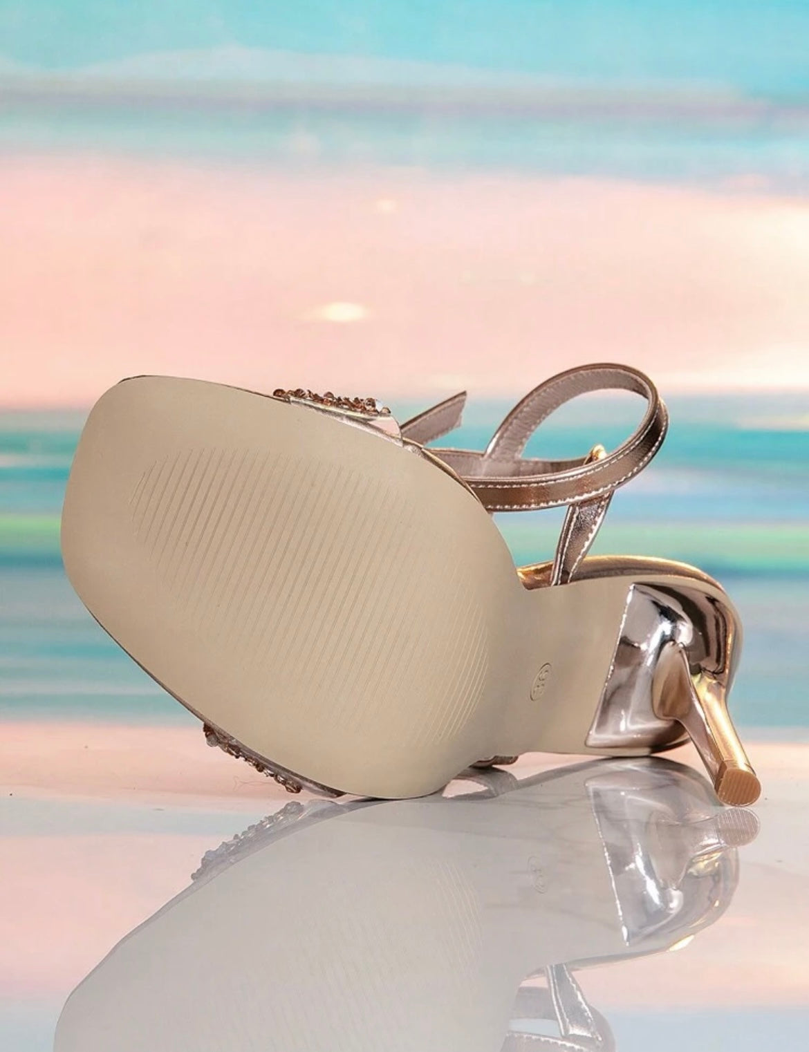 Whether you're attending a wedding, cocktail party, date night, or special celebration, these sandals will elevate your look instantly. The versatile metallic tone pairs beautifully with both bold and neutral outfits.