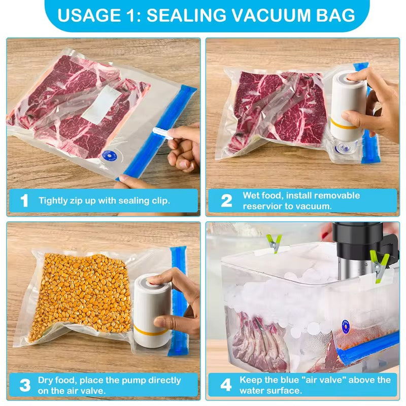 Transform your food storage game with our cutting-edge USB Rechargeable Vacuum Pump Food Storage Bag Sealer. This innovative device combines powerful vacuum technology with the convenience of USB charging, making fresh food preservation easier and more accessible than ever before.