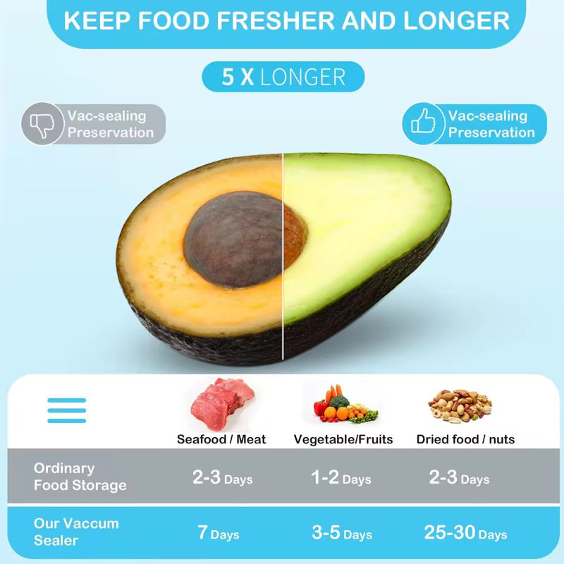 - Powerful Vacuum Pump - Creates airtight seals that extend food freshness up to 5x longer